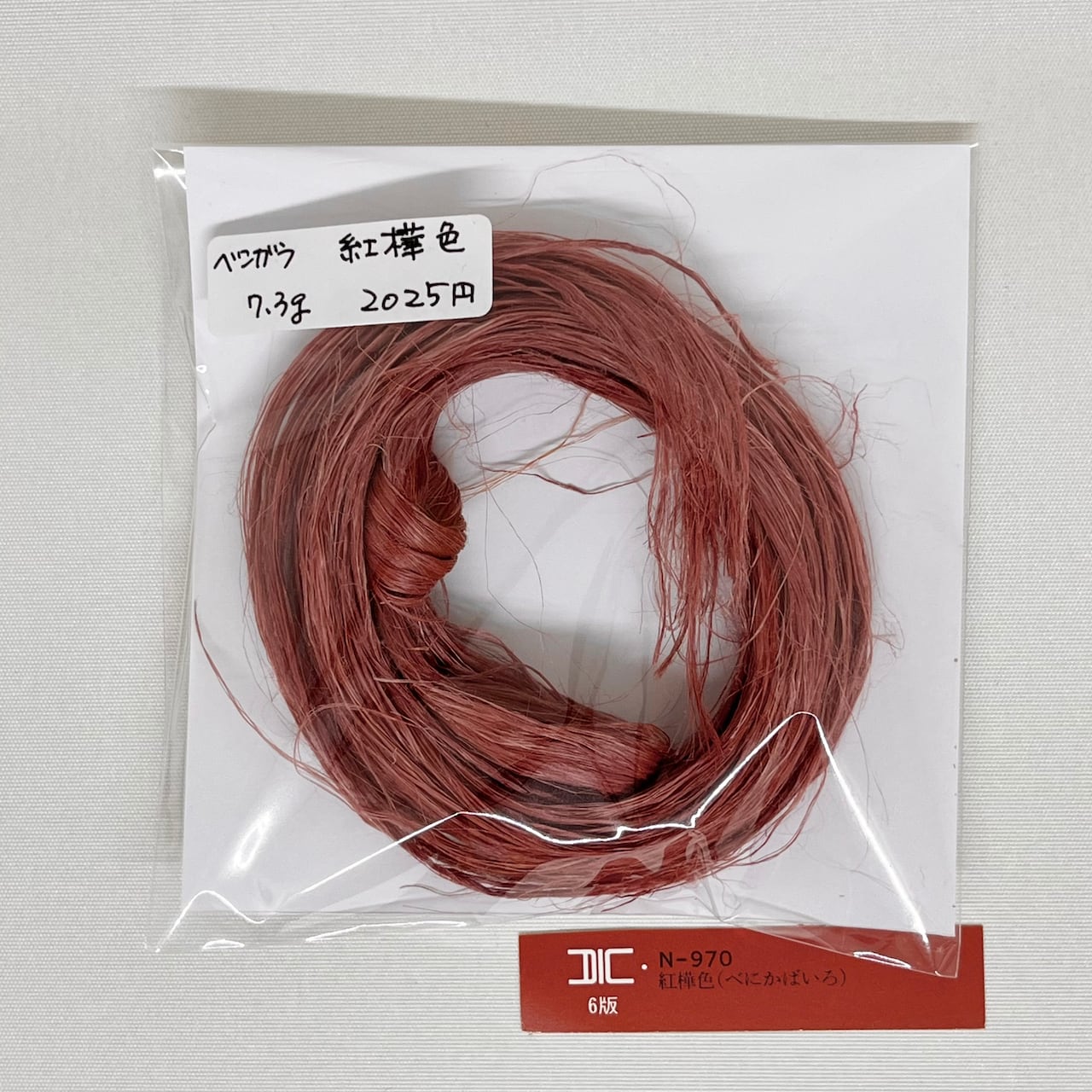 ベンガラをベースとした染料で精麻を1枚づつ染めました。